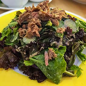 Kick off your meal with our Farm Fresh Salad with Tuna flakes & Sesame dressing, using vegetables harvested directly from our farm or try our house specialties such as the Shiitake Mushroom with Farm Fresh Seasonal Vegetables, Fragrant Crispy Cereal Prawn, Signature German Fusion Crispy Pork Knuckle, Volcano Rock Charcoal Baked Kampong Chicken (Pre-Order required), Crispy Soon Hock with Signature Hong Kong Sauce, Chilli or Salted Egg Crab (Pre-Order required).